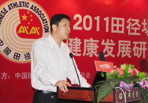 圖為田管中心市場開發部部長蔡勇 華奧星空5月15日成都電(記者 劉向前)中國田徑協會場地器材委員會主辦的首屆“田徑場地健……