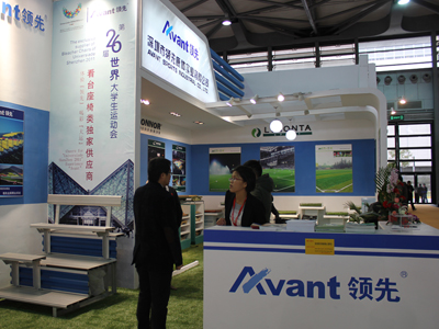 領先展位外觀 利蒙塔人造草和領先共同參展 領先金屬看臺系統 看臺座椅產品 領先的拼裝運動木地板系統 相關鏈接: 三個月建成七萬人看臺 領先人用速度征服市場 1……