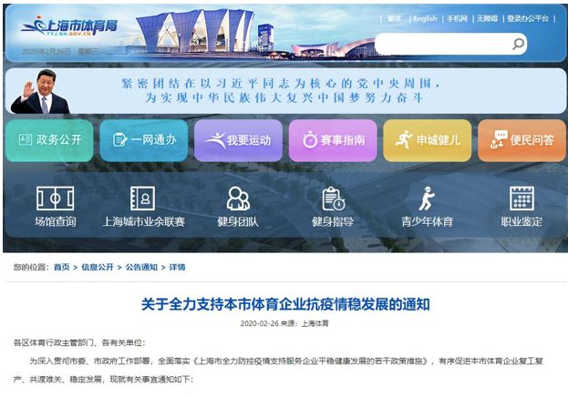 近日,上海市體育局發(fā)布《關于全力支持本市體育企業(yè)抗疫情穩(wěn)發(fā)展的通知》(以下簡稱“上海體育支持12條”),提出將通過促進相關政策落實、減免企業(yè)房屋租金 、給予賽事企業(yè)補貼等12項措施促進本市體育企業(yè)復工復產(chǎn)、共渡難關、穩(wěn)定發(fā)展。