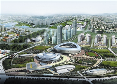 圖為體育新城效果圖。 大連日報訊(記者徐伯元)在大連市中心城區北部渤海之濱,一片規劃面積74平方公里、可容納100萬左右人口的北部新城區正在醞釀著未來的“綻放”。作為大連市史上規!