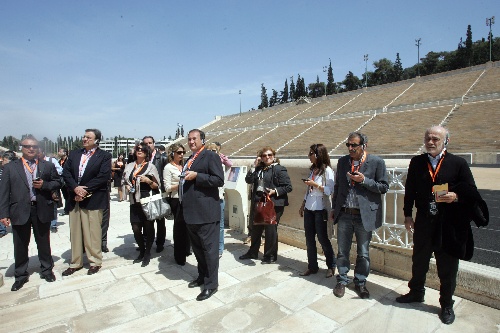 雅典,2010年4月15日 (體育)(5)泛雅典體育場對公眾開放 4月15日,游客們在體育場內參觀。當日,位于希臘首都雅典市中心的泛雅典體育場開始對公眾開放。泛雅典體育場修……