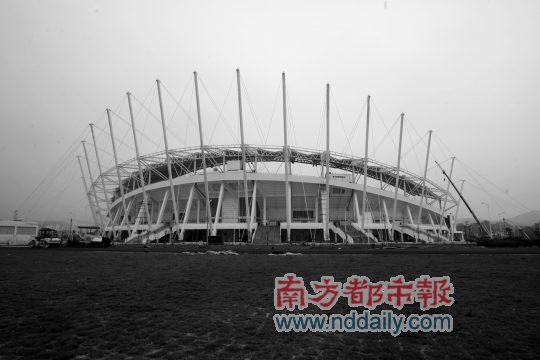 四四方方如同火柴盒,龍門體育場館主館穩重而不失可愛。此前,該館已于2009年9月中旬完工,目前正在進行“小手術”,給屋頂加上雨篷。由主館、全民健身廣場、標準田徑……