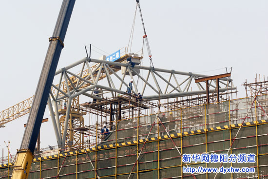 3月11日,江蘇省蘇州援建、蘇州二建承建的四川省綿竹市體育場主桁架開始吊裝。該主桁架一共54榀,每榀重量從7。3噸?9。4噸,吊裝高度達50米,難度很大,二建職工克服重重困難使第一……