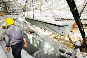 深圳大運中心主體育館現正大規模吊裝環保清水混凝土看臺板,目前已完成98%以上,本月底將全部吊裝完畢。 ……