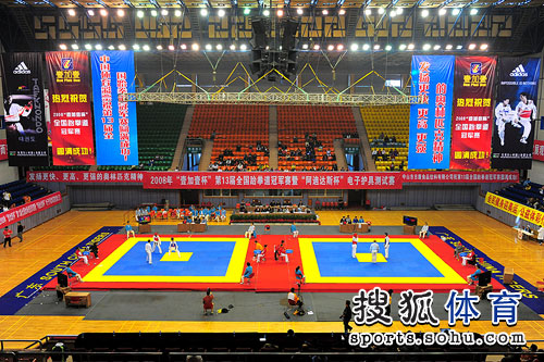 2008年全國跆拳道冠軍賽暨電子護具測試賽明天將在中山體育館揭幕,此次比賽不僅將在全國范圍內首次試用新規則,并首次正式使用電子護具,通過賽事進行雙測試……