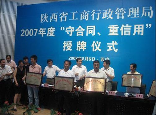 陜西康大榮獲“省級守合同重信用”企業