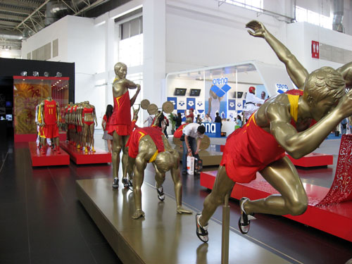 李寧的展臺以中國紅為主題,展臺內最引人注目的是李寧自1992年巴塞羅那奧運會開始,歷經1996亞特蘭大奧運會、2000年悉尼奧運會和2004的雅典奧運會四屆奧運會贊……