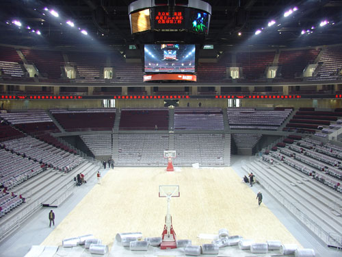 五棵松奧運籃球館木地板鋪裝完畢---“泰步”輝煌 光耀華夏