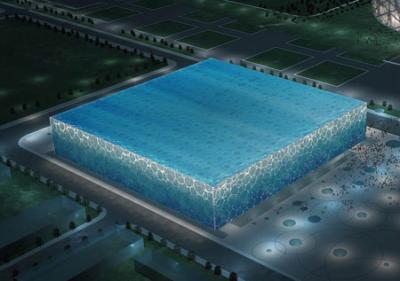 水立方夜景俯瞰效果圖 10月22日訊北京是座水資源相對(duì)緊缺的城市,因此北京人十分注意“節(jié)水”。雨洪利用、建立污水處理站、充分利用中水(污水經(jīng)處理后獲取的非飲用水)……在北京奧運(yùn)場(chǎng)……