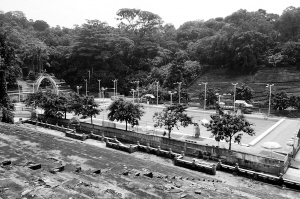 破舊的水泥看臺上,水泥已經多處碎裂,露出了里面的紅色磚塊 5米跳臺和7米跳臺是后來加建的,泳場的跳水池被納入徹底改造范圍 以前讀小學的時候就經常到越秀山游泳場……