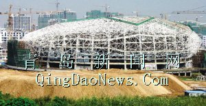 青島體育館形似“鉆石” 鋼結構媲美“鳥巢”