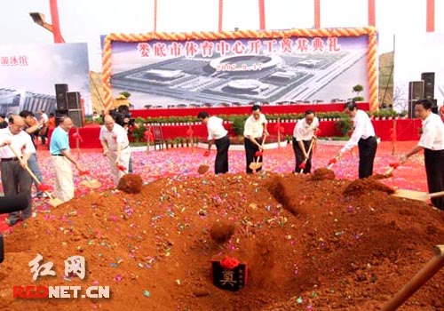 (湖南省和婁底市有關(guān)領(lǐng)導(dǎo)在參加婁底市新體育館奠基儀式) (婁底市市委書記蔡力峰宣布新體育館奠基儀式開始) 9月17日上午,婁底市新體育活動(dòng)中心建設(shè)工地現(xiàn)場(chǎng)人如潮涌,笑聲陣陣,鼓樂(lè)……