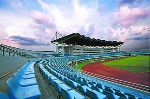 氣勢恢宏的市體育中心主體育場。 (陳偉平 攝) 造型獨特的游泳館。 (農寶勤 攝) 玉林人民無比的興奮,玉林人民無比的幸福。 8月30日,……