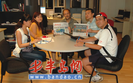 本報記者董冰等(左一)專訪哈里斯多斯(左三) 今天上午,按照事先約定,記者來到了希臘奧委會的辦公大樓,對希臘奧委會進(jìn)行了探訪。接待我們的是雅典奧組委媒體……
