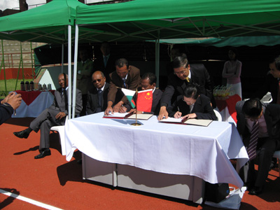 8日上午,中馬兩國政府代表就我援馬達加斯加首都阿拉盧比亞體育場塑膠跑道維修項目竣工暨向馬國政府贈送體育器材和物資項目在阿拉盧比亞體育場舉行交接儀式。我駐馬……