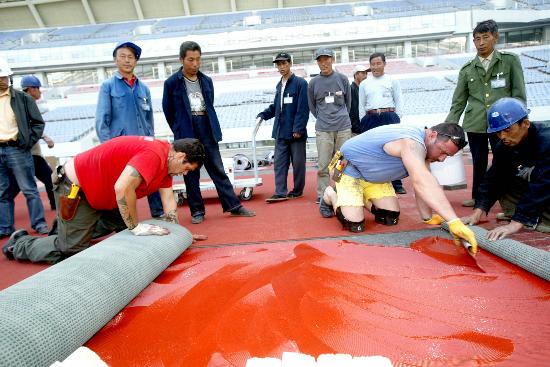 沈陽奧體中心鋪設蒙多塑膠跑道