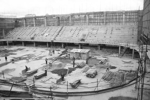 大運會滑冰館主體工程 昨天,在哈爾濱體育學院內工人們正在大冬會滑冰館建設工地里進行緊張地施工,滑冰館場內主體結構框架工程完……
