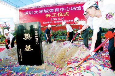 深圳大學城體育中心昨奠基 大學城體育中心于30日正式破土動工,標志著2011年第26屆世界大學生運動會的比賽場館建設正式拉開帷幕。市委常委、……