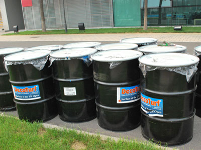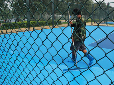 鑫業(yè)永華的工人正在翻新中網(wǎng)訓(xùn)練場