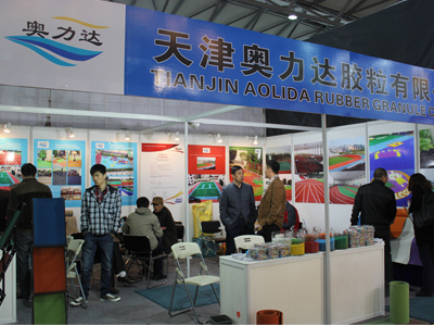 在展會現場,記者看到,共創集團、廣州同欣、天津奧力達、廣州展亦以及來自上海本土美凱集團等體育地材企業,將自己的新品以及主打產品在展位中進行了展示,同時向前來咨詢的國內外觀眾進行了推廣和介紹。