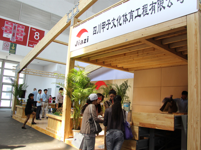 四川甲子將木結(jié)構(gòu)場館搬到了體博會中