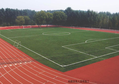 6、使用銀白色的石英砂或彩砂填充,使學生運動時不至于弄臟衣服和環(huán)境,且操場上的所有標線全部采用直接編織,不再為頻繁劃線而苦惱。