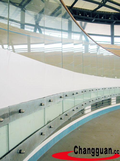 賽道安全區的內側設計為透明度好的鋼化夾層玻璃防護欄板,不僅可以最大速度的保證了運動員的安全,而且美觀,又利于比賽、訓練的順利進行。在國內也是首次使用玻璃防護欄板。