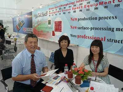 529?61 廣州格林斯柏體育設施有限公司參展第二十二屆中國國際體育用品博覽會,我們來到了格林斯柏的展位。