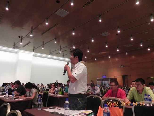 國際場館經(jīng)理人協(xié)會下屆主席、美國俄亥俄州戴盾大學(xué)體育場館經(jīng)理約翰· 希爾先生發(fā)表題為《國際場館經(jīng)理人協(xié)會介紹》的演講